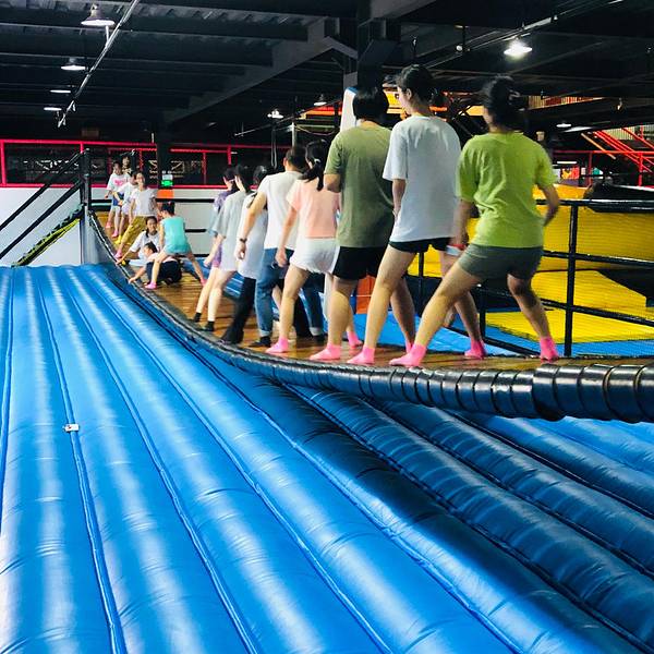 两个人瞬间兴奋了,接着就往里面蹦床区走了,上了楼梯就到了硕大的蹦床区,工作人员拦住我们询问我们...