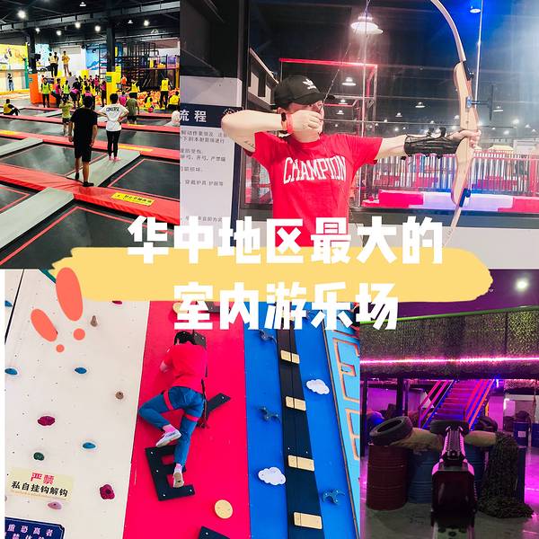 这个娱乐公园是华中地区最大的室内游乐场,在雀园路的汽车城里,旁边都是4s店,开车过去的话不仔细看非常容易错过。那天跟朋友去的时候刚好店门口有空停车位,停车还算比较方便。 👆地址:长沙市雀园路与刘家冲路口西100米,我们导航过去的,从市中心开过去大概15公里左右,20多分钟就到了。 🅿️停车:店前有停车位可以免费停车 地铁:附近是地铁1号线大托站,最近的口应该是4号口,出来需要走大概1公里 💰门票:团购就ok啦,178元3个小时 进门就看到了别人在体验靠近门口的大秋千和蹦极,引起了我们极大的兴趣到第一个服务台处买票,购买+签署保险(5元/人)才能入内。之后到里面第二个服务台领取存储物品的手环,没有自备防滑袜的需要购买防滑袜(10元/双)。之后就可以在场内自由穿梭啦~ 储物柜也挺多的,vr游戏区就正对着储物柜,每个项目都有工作人员在指导说明,看着就挺安全的那种,看没人排队和朋友顺便玩了个过山车和切水果vr,两个人瞬间兴奋了,接着就往里面蹦床区走了,上了楼梯就到了硕大的蹦床区,工作人员拦住我们询问我们是否进行了热身,我们一脸懵逼,于是被工作人员带着进行了热身运动,还给我们讲解了安全知识,安全知识还有视频可以观看,里面会提到正确和错误的动作什么的。因为我之前也去过其他的蹦床公园,对比起来发现这里真的挺专业的。 我们先在里面转了一圈,看了下有哪些项目,然后就开始打卡感兴趣的项目了~投篮机、大秋千、攀岩、蹦床、网红桥、迷你卡丁车、射箭、真人cs等等,我们在里面晃了一圈花了2个多小时,把这些项目都玩了一遍,玩得人都觉得有点累,我们觉得最好玩的是卡丁车和真人cs了。因为想赶在晚高峰来临前开车到市中心吃晚饭,所以还有好几个项目我们就没去体验了。