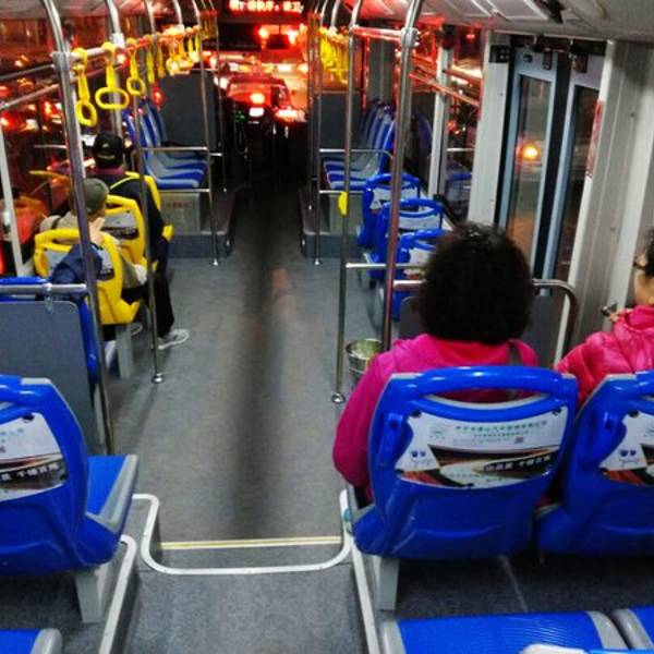 游完南湖,去朝阳广场吃特色,只有我们六个人的公交车,哈哈~