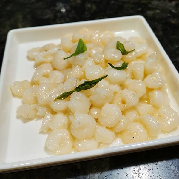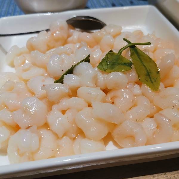 每一颗都是手工剥制,偶尔有几粒虾仁可以感受到虾壳也不会特别突兀。虽说是龙井虾仁但是光吃虾仁的话龙井味道又不是十分的浓郁,和虾仁间点缀的几缕龙井一起送入口中咀嚼,才有龙井虾仁的深意。