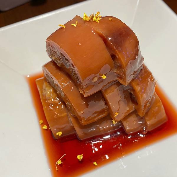 - 东坡肉我看是每桌必点的,只有一块,但是味道很棒,肥瘦相间的,很入味