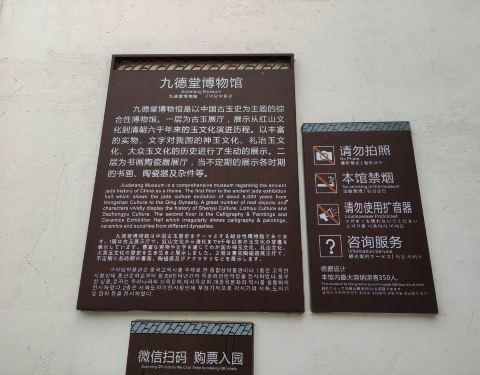 景点名:九德堂博物馆 地址:嘉兴市嘉善县西塘古镇景区内四贤祠弄57号 九德堂博物馆是以中国古玉史为主题的综合性博物馆,一层为古玉展厅,展示了从红山文化到清朝六千年来的玉文化演进历程。二层为书画陶瓷器展厅,不定期展示各时期的书画、陶瓷器及杂件等。本人五月去时还处于疫情期间闭馆状态