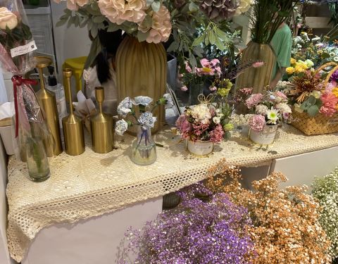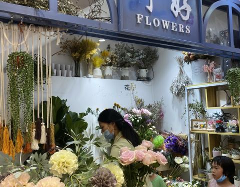 这一家花店位于江南西路的江南西名店城负一楼,地铁2号线江南西站A出口,一出来进入江南西名店城,左手边第一家店就是了。最近商场在做活动,所以我来到这里,一进门就见到好漂亮的花朵,这里的花朵颜色很鲜艳,有大花也有小花,有的用篮子插好,可以整一篮子花买走,也有一小束的花朵,或者也可以现场叫老板帮你打包好。