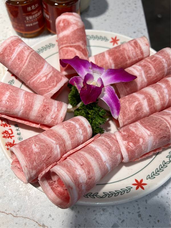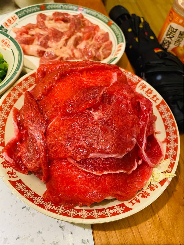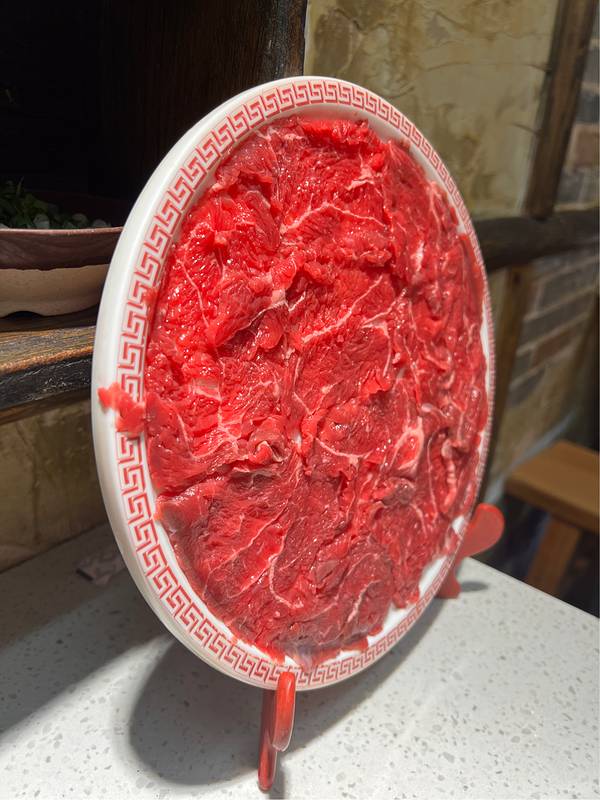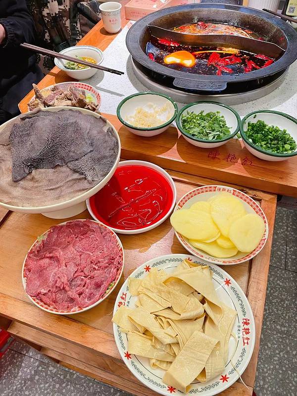 新鲜采购的食材更是让人眼花缭乱,从荤菜到素菜,从卤菜到各种小菜,品类丰富多样,令人垂涎欲滴。尤其那肌理分明的牛肉,被牛奶包裹着,涮过红油锅之后,麻辣鲜香加倍,真的是太美味了!😋😋