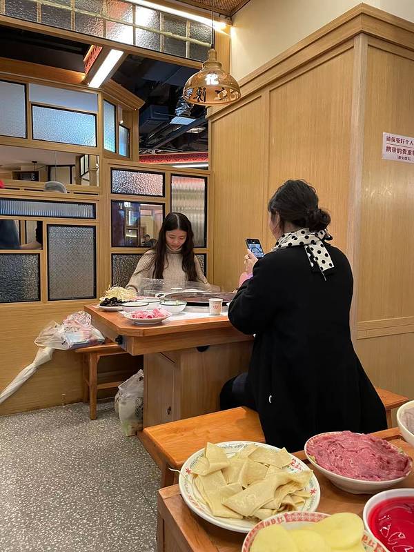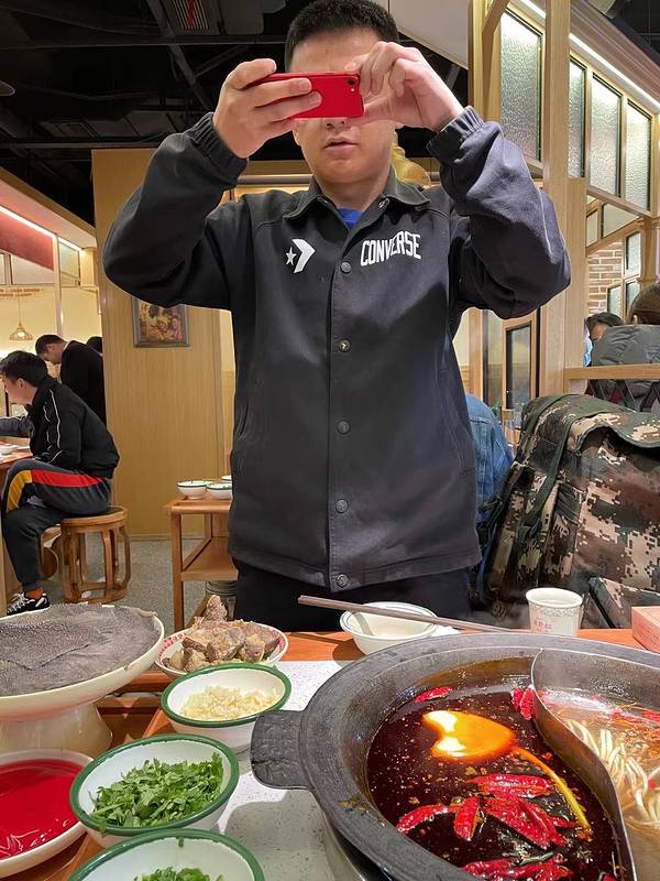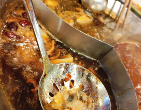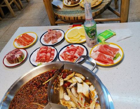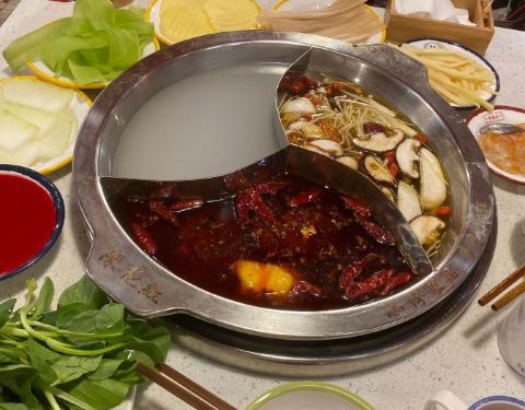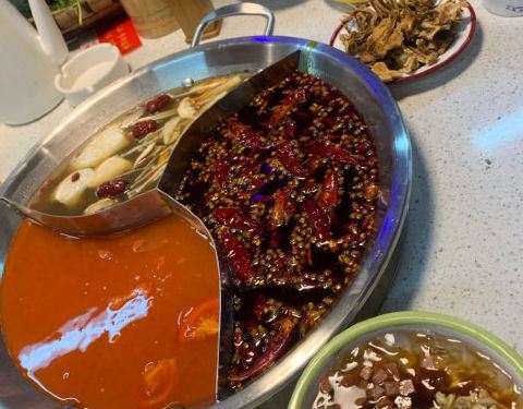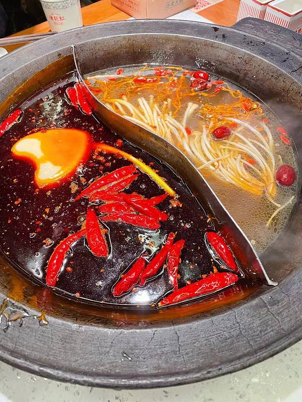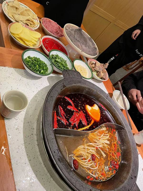 无意中搜到附近好评的火锅,他家门口在装修外墙,不过不影响就餐,甚好我们有人占位子先到,后面来的只有等了。酒酿芝士下滑细嫩爽口。素菜也比较有特色,第一次吃干金针菇和干黄瓜味道超好。小吃红糖蛋煎糍粑也很不错。