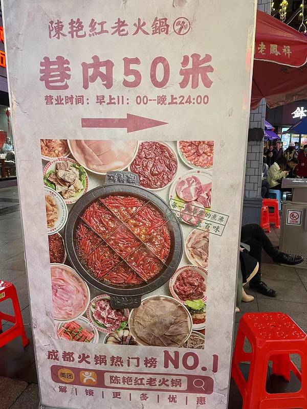 这家陈艳红(春熙路太古里旗舰店)位于成都市最热闹的商业中心春熙路步行街分支新街后巷子里。在成都旅游,走在人群拥挤,熙熙攘攘的春熙路步行街上,感受热闹的商业氛围,一眼就看到了店门口坐满排队等位的客人,你可以网上排号,或现场拿号,总之高峰期就是人多,拿好号至少也要等1小时左右吧,真的是很火。