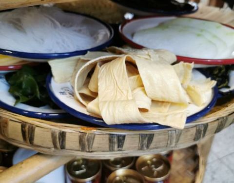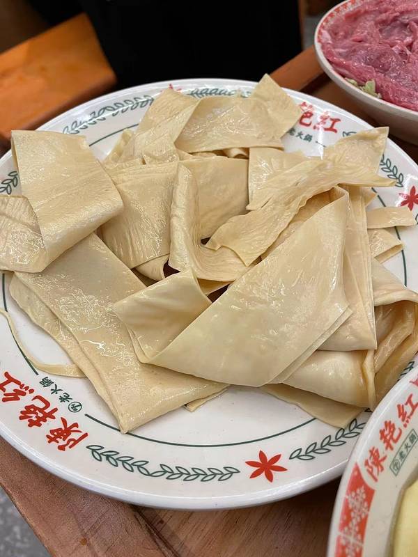 豆皮,是低脂高纤维的食物,涮好的豆皮完全吸收了红油的味道,非常的好吃,也算是颜值高的一道素菜,它还有很强的饱腹感呢。