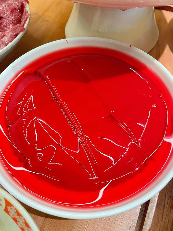 鲜血旺,鲜嫩嫩的红,在红汤锅里煮过的鲜鸭血,那细腻爽滑的口感简直让人着迷。