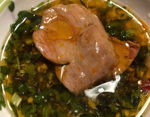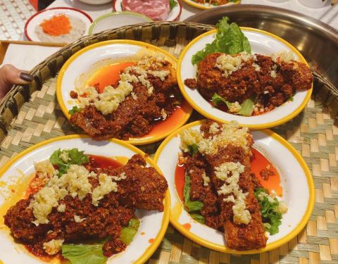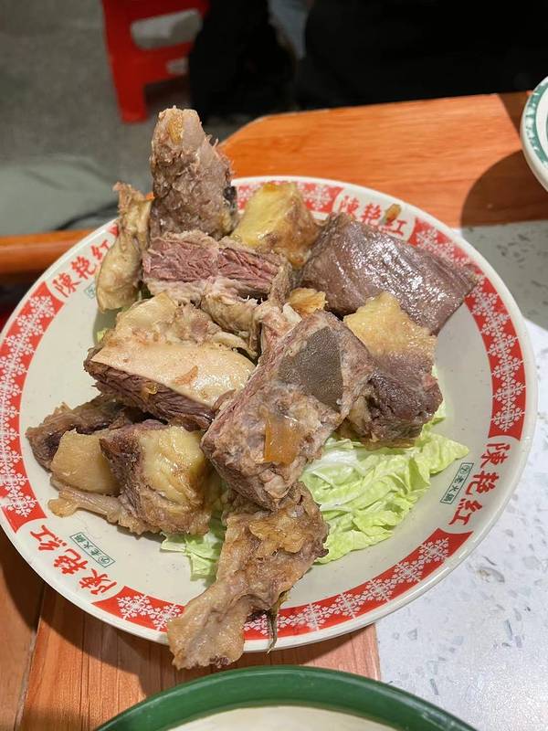招牌菜耙耙牛肉,是店里的特色一绝,必点!一整盘里都是超级厚实的上等牛腩块,据说上桌的时候,已经经过秘制香料腌制、加8小时焖煮后的。在红油锅里滚上一圈,吸满汤汁,蘸干碟油碟后,一口下去真的棒,口感软糯又有嚼劲!