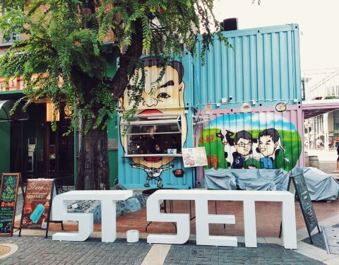 2、这边感觉像个创意园的形式,咖啡店、小酒吧、泰菜、粤菜都有,只是不卖海鲜;