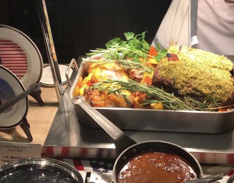 最近公司有大型酒会,安排在了广州富力君悦大酒店进行,宴会厅位于酒店三楼,从大门口进去,坐手扶电梯上去就是了。宴会厅很大,呈长方形,没有柱子,比较开明、空旷, 灯光和音响效果都非常不错。自助餐出品也是很棒棒,甜品和蛋糕做得非常好,虽然当时的品种不是特别多,但是蛋糕不油不腻,也不会特别甜,泡芙实在是吸引我。热菜里面的牛肋条肥瘦适中,酒店也没有控制数量,每次你让他们多给一点也可以。