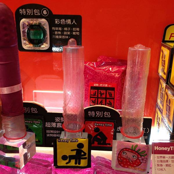 台湾真开放,保险套世界的招牌那么醒目,害羞害羞~。欣啊:挑什么送人好呢~。就是要这么屌