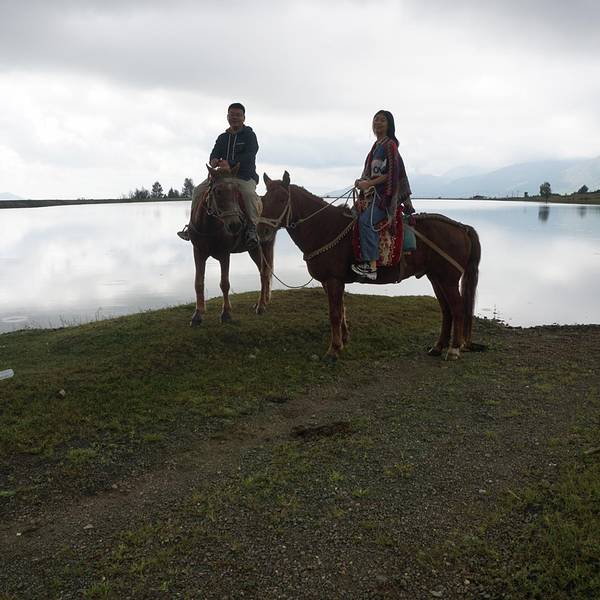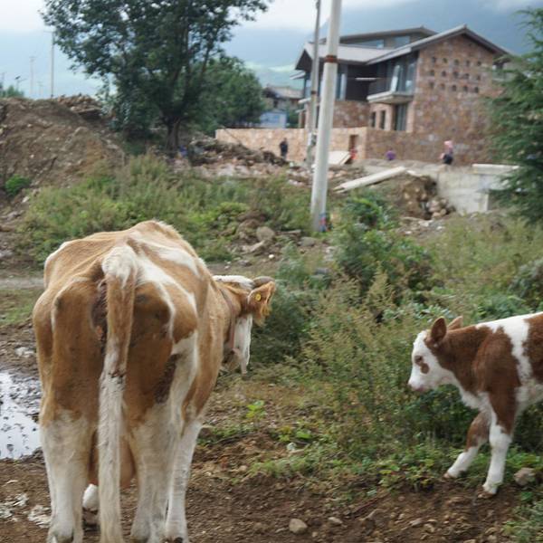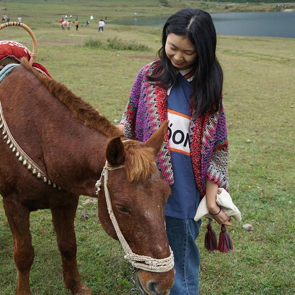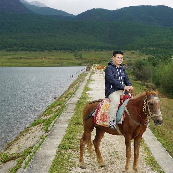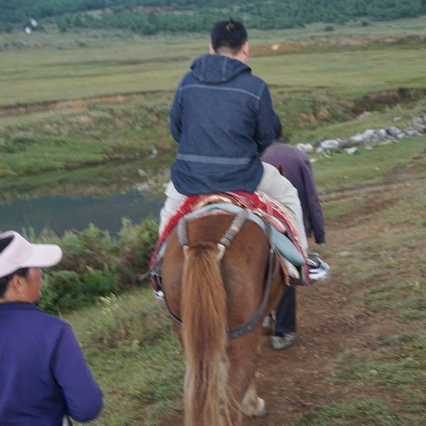 就是因为去不了玉龙雪山,蓝月谷也不划算去了,不然又要100进山费,那就去最靠近雪山的地方吧跟大姐还价,本来50每人,环湖一圈,最后60两人,还帮忙拍照呢天气略不好右边的小牛崽才一周大