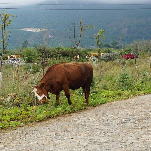 天气略不好。跟大姐还价,本来50每人,环湖一圈,最后60两人,还帮忙拍照呢。右边的小牛崽才一周大