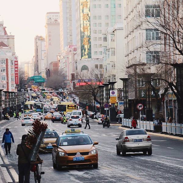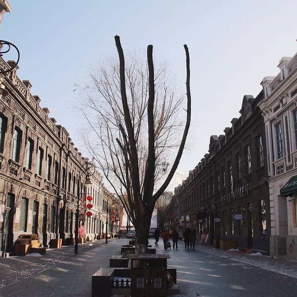 哈尔滨最繁华的商街之一,可见许多经典俄式建筑。