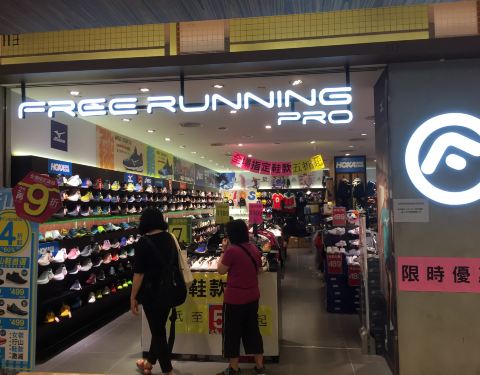 杏花新城西翼商场是售卖运动用品的集中地,Free Running Pro 是其中之一,他们以运动鞋为主,几家大品牌都有售,店内展示了不少鞋子,也是在做特价。