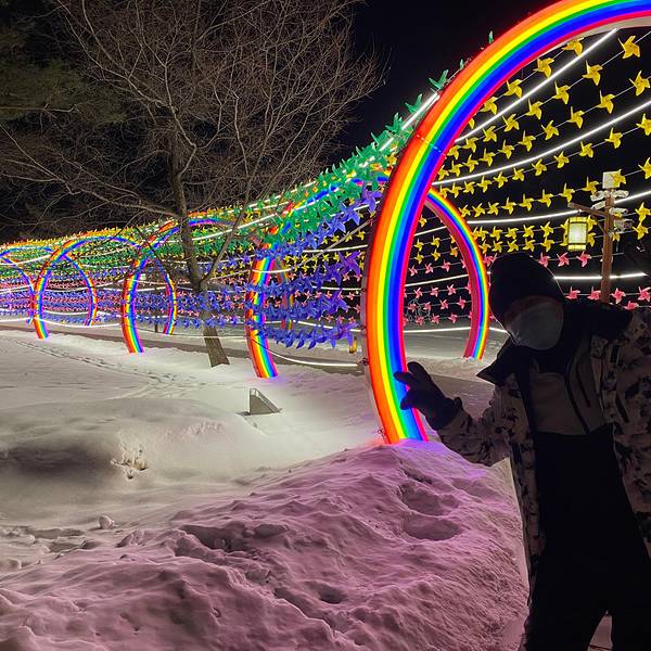 吃饱我们的午餐已经是3点多了,天也快黑了。 这天也黑得太早了一点。 回酒店上了个洗手间,计划去秋沙鸭公园看看。出发!其实秋沙鸭公园跟我们住的地方很近,但不认识路,我们就直接打车了 这边打车不贵,6元起步价,地方小,车辆多,基本用不了多少钱。 就是天黑了,啥都看不了。 初见雪的南方人在附近散散步,顺便消化一下肚子里的拌饭。不得不说,把手赤裸裸地放在雪上,真的会冻得痛啊这里有一片没被踩过的雪,软绵绵的忽然想起,很多年以前我第一次去黄山,山上看到雪,也是这般 在黑黑的夜里开心地拍照 尽管大晚上的其实拍得一点都不好看也不在乎 因为碰到雪了呀!!