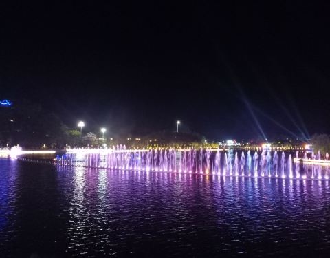作为廉江最大的免费休闲公园,晚上特别多人散步,偶尔还能碰上喷泉开放,还能爬山锻炼身体。