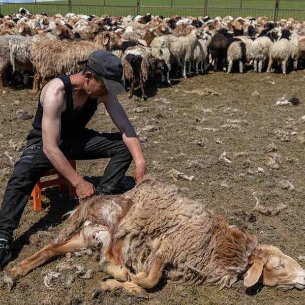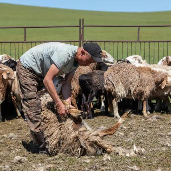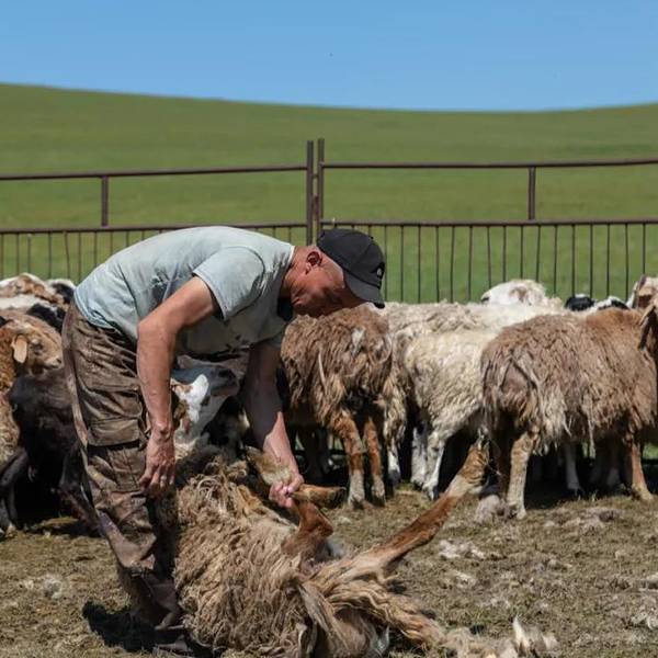 第一天的行程都是草原主题,草原上本是没有路的,车辙子多了,路也便开出来了。今年内蒙的雨水比较多,草原上的路也相对比较坑洼,一路上都有点免费全身按摩的感觉!路过一处牧民的蒙古包,在好奇心的驱使下让高哥停了车,试图下去近距离看看牧民的生活!好在高哥懂门道,告诉我们这边的礼仪,牧民的地方不能随便进,得事先征求同意才行,否则可能闹不愉快~高哥先我们下车,因为他本身是陈巴尔虎旗的人,所以跟牧民交流很顺畅,在得到牧民小哥的同意后,我们走进了他们住的蒙古包,还拍了照!我这才知道原来牧民们真的是过游牧生活,蒙古包也是真的能折叠打包收纳的,根据时节换居住地的,找不到家的说法还真不是段子,哈哈哈。去的时候还刚好碰上他们剪羊毛,一年就剪一次羊毛,剪羊毛的时间也有学问,这个季节剪毛刚刚好,剪毛可以避免羊群过热,到了冬天羊毛长好了又能保暖。剪羊毛看着不难,重在的是要羊儿顺从,为保险起见,都会把羊的四条腿捆住,这样羊就不会乱动,剪毛的时候就不会伤到羊了,有过剪毛经验的羊普遍比较温顺配合,第一次剪毛的小羊就不那么老实了~