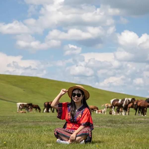 上学时,一句“天苍苍,野茫茫,风吹草低见牛羊”,轻而易举地在我脑海中勾勒出了一幅草原上的如画美景。那时小小的心房就种下了一个愿望,长大了一定要去大草原上走走,听牛羊咩哞,看马儿疾驰,住蒙古包里,早起挤牛奶,日暮看夕阳,这样的美好只是想想都觉得温暖!终于,在6月的尾巴,我听从了心底的声音,约上闺蜜,开启了呼伦贝尔的旅行!为何目的地选择呼伦贝尔呢?因为心底有执念,总觉得只有这里广袤无垠的草原才是真正的草原,才配得上我心中所期待的豪情万丈和无限诗意!5天4晚的旅行且听我为你们娓娓道来!最前面先写清楚,我们是2个女孩子,选择的是包车旅行!没有跟团,担心玩不好,破坏了心中那份美感,也没有自驾,因为事先做了功课,知道草原的路并不好开,加上路况不明、部分地段完全没有手机信号,为了稳妥保险,我们选了有十年经验的包车师傅,也就是这样认识了特别会拍照的高哥gg8605 一个家在海拉尔的包车师傅~天然牧场,沉醉于大草原的唯美光影我并不是没见过草原的人,之前去过肃南大草原,也曾在乌蒙大草原上追风车,但呼伦贝尔的大草原给我的感觉却完全不同,后面我会慢慢说!之所以选择在当地包车,挑一个靠谱的老司机,是因为想给自己一场完美的草原之旅,想用手中的相机记录下每一处路上的美好,看到喜欢的风景可以恣意地叫停,让双腿任性地踏遍每一处想立足的土地,这才应当是草原正确的打开方式,是旅游应该有的本真模样!重庆没有到海拉尔的直达航班,我跟大多数人一样飞到了哈尔滨,买了晚上的卧铺一路睡到海拉尔,早晨6点50抵达海拉尔站,彼时我们的包车师傅高哥已经等在了出站口,接到我们后先带我们吃了早餐,然后就一路奔驰着上了草原!