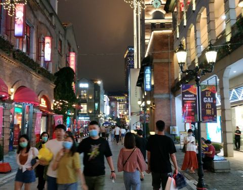 终于又看到人头攒动的景象,那个熟悉的汉街回来了。灯光五彩斑斓,人声此起彼伏,大舞台演艺正酣,各色门面广迎各方客人,一派生机盎然的景象。