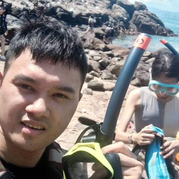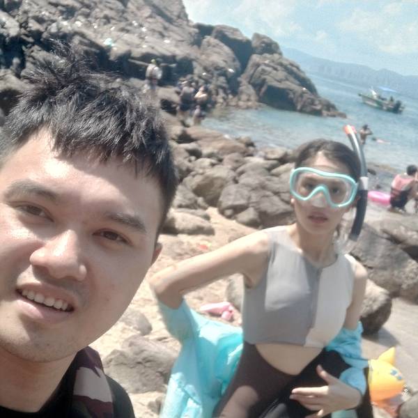 我们在去哪儿上提前买的票,是一个叫“战浪”的俱乐部 比我上一次去的时候好很多,在俱乐部里面可以免费停车,因为我们住的宾馆是中午12点准时要退房,但是我们预算一下时间,中午12点赶不上,所以只好把行李和各种装备都装车上,先退房,东西带到俱乐部了,幸好他们有自己的停车场,我们可以直接在车上准备好要出海的东西。 因为出海的时候快艇载我们到浮潜点后就会开走,我们是可能再回到快艇上去拿东西的,所以要准备好东西,自己带好的。 我们选的是上午10:00出海的班次(一天有3个班次,上午只有1个班次,最早就10:00,不过我们去到浮潜点的时候看到已经有很多人在玩了,可能不同的套餐不同的班次 )呆呆的我们,记得做好防晒!!!从双月湾海边俱乐部乘快艇到浮潜点,大概15-20min到浮潜点啦!!已经很多人在浮潜了我们自己带的浮潜装备,救生衣是在俱乐部就穿上的准备下水这时候的海水很冰凉的先拍和照