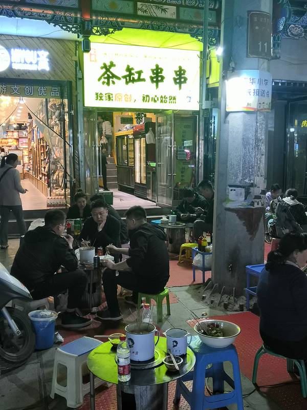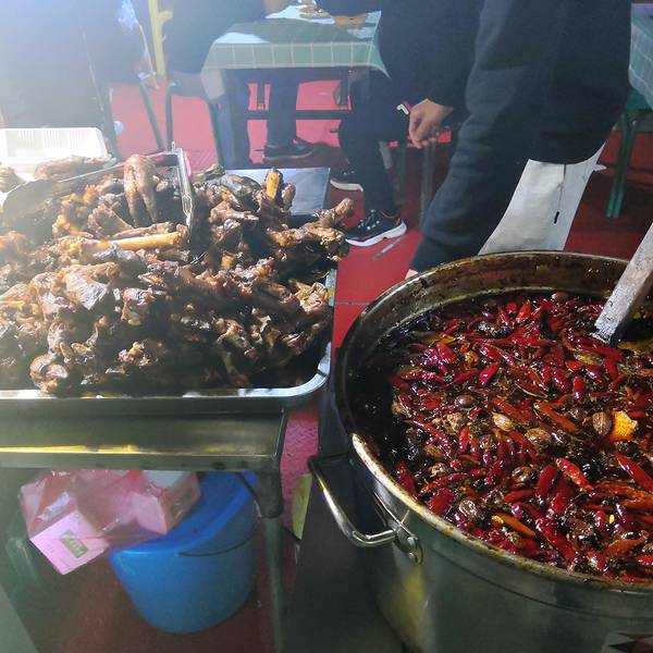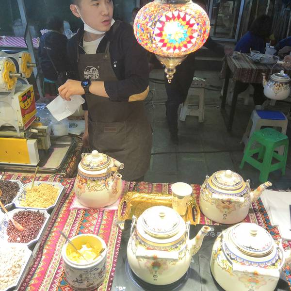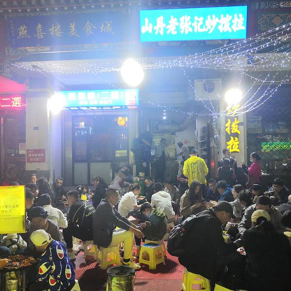 这条街相对于正宁街,作为外地人我更喜欢逛这里,整条街比正宁街要宽很多,吃的种类也多一些。茶缸串串(连锅都省了)炒拨拉是山丹县最有名的一种地方小吃,到山丹的游客一定都吃过这种有地方特色的小吃,炒的时候烟熏火燎,吃的时候再加上啤酒那是一个享受。 营养成支以铸铁鏊子,将切好的羊肝、肺、肚、肠、心等佐以调料葱花蒜苗下锅,以柴禾或煤炭为燃料,用猛火爆炒,待熟即食。 边炒边吃,美味可口,热热乎乎,实在是一种不可多见的街头小吃。 《摘自百度》特色奶茶老酸奶新疆手抓黄金土豆🥔胡辣羊蹄回酒店了,准备回家了。
