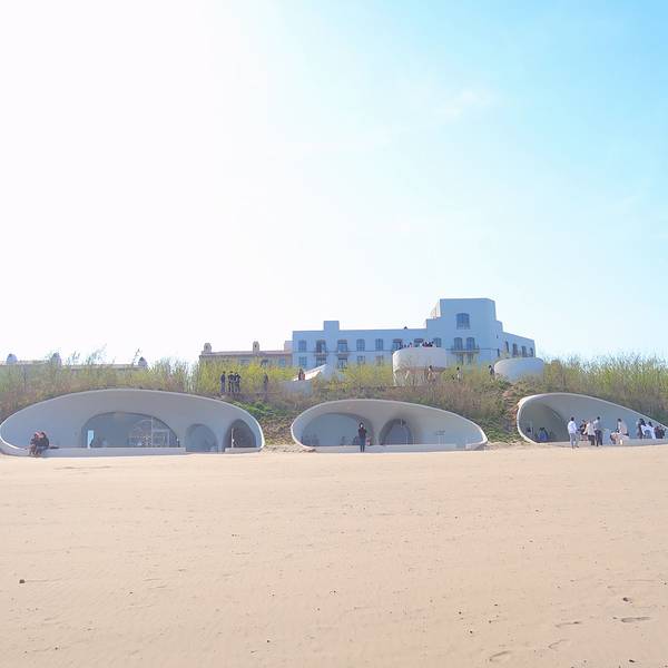 座落在北戴河新区海边 博物馆的外观与沙丘完全融为一体 建筑师从从孩童玩沙的游戏中获得灵感 打造出一系列外观各异又互相连结的“洞穴”嵌入海边沙丘的地貌 就像是人类最原始的居住形态 内部空间就像是一个神秘的洞穴网络 连贯的穹顶 圆拱厅室错落其中 因为融合了大地自然的元素 在展厅空间中 能感受到建筑的独特形式 及其自然环境之间的对话关系 沙丘美术馆有着不同的方向和大小的开口 透着大片的透明天窗 为博物馆提供自然采光 沙子覆盖的屋顶及混凝土墙 降低了建筑物的夏季热负荷 保持舒适的温度 透过天窗与巨大拱形窗户的采光 可以从不同的时间与角度 欣赏海天自然的美好景致~