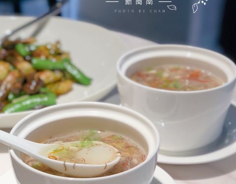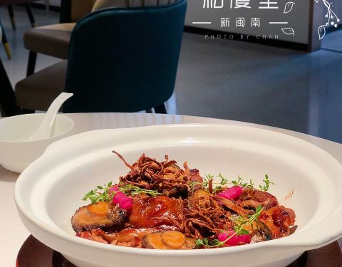 私厦里•新闽南🥢,创意闽南新菜系✨。📍航空古地石广场,金边路566号B区B3栋2楼206,招牌挺大一个挺醒目👀很好找。环境明亮大方,清新典雅高贵💕,有散座也有包厢🥂,适合各种聚餐情形🍾。 私厦焖鲍姜母鸭🦆,闽南传统菜姜母鸭,加入红烧焖制鲍鱼,更显创新✨,口感也很棒👍,可以同时吃到Q弹紧致的肥美鲍鱼以及入味鲜美的鲜嫩鸭肉💕;发菜海皇带子羹🥣,口感浓郁的鲜香浓汤,暖胃又营养。