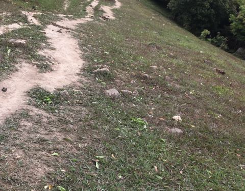 草山位于新界中部,是城门郊野公园的一个部分,位于麦里浩径第七段的尾端,靠近铅矿坳。公交站离这里非常的远,只有喜欢远足的人才会来到这里,山顶上有一座香港特区成立10周年的纪念亭。来到这里,就要考虑是继续往麦理浩径第八段行走,或者是下山。但是从这里下山到最近的小巴站也要走一个多小时,并且落差很大,对膝盖不是很友好的道路。