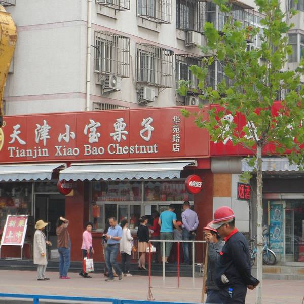 小宝栗子,采用燕山山脉优质甘栗为原料,易去壳,口感香甜软糯,吃过一次就惦记了。 来天津之前并没有做美食的攻略,发现这家店,对于天津之行完全是一个意外的惊喜,这真得好好感谢天津的公交,是的,没错就是公交站!当时参观完天塔后,去坐公交,惯性思维,以为公交线路里的下一个站一定就是在本站的右边(其实不是的,还要记得参考站牌下的箭头),于是我就华丽丽地坐了反方向的车了,时间尚宽裕,就坐到总站再倒车了,权当游车河了。随着公交就从景区来到了居民区,还没下车就我开始兴奋了,来天津这么多天了,我还是第一次(第一次!第一次!!)看到有队伍排到马路上的食品店!而且是在居民区,而且是旅游攻略基本没有提到过的店,对于吃货来说,这真的是激动人心的moment。一到总站,我是飞奔过来了炒栗子到手,摸着还是温温的,外壳很脆,很薄,不粘手,非常容易去壳,栗子还是热的,温度刚刚好。