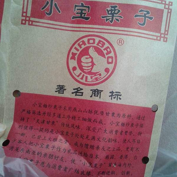 小宝栗子,采用燕山山脉优质甘栗为原料,易去壳,口感香甜软糯,吃过一次就惦记了。 来天津之前并没有做美食的攻略,发现这家店,对于天津之行完全是一个意外的惊喜,这真得好好感谢天津的公交,是的,没错就是公...