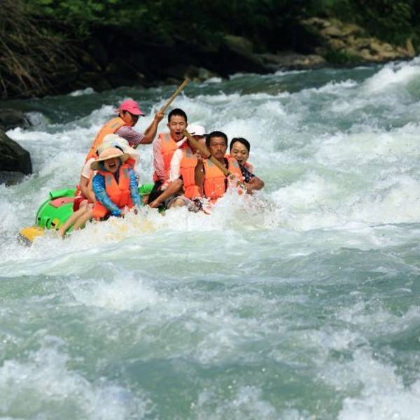 济源得名于济水,是济水的发源地。大家所熟知的“愚公移山”的故事就发生在这里。 济源市河南十八个地市之一,作为面积最小,人均GDP超高的县级市,济源依托于得天独厚的自然条件,打造了这个宜居城市。 原始森林就在这济源的邵原镇,占地3万多亩,海拔2210米,是华北地区仅存的一块原始森林!原始森林中大树参天,双围难抱哦! 原始森林生长有珍稀的龙持木,猕猴桃等植物和上千只猕猴、狼、虎、豹、鹿、麝、獾等180多种动物,还有460余种药材资源,被国家列入自然保护区。 东阳河从原始森林中一带穿过,带着这里的泥土和雨水,越过黄河三峡,进入小浪底水库,投进了母亲河的怀抱,开启了她“黄河之水天上来,奔流到海不复回”的生命历程! 我们的原始森林漂流就在东阳河走出原始森林10公里的地方!东阳河在王屋山的崇山峻岭中穿梭,水质天然淳朴,河岸环境清幽,河道中卵石经历流水日积月累的冲刷,磨圆了棱角,洗净了泥尘,静静等待游客的光临。 在原始森林漂流中,乘坐橡皮艇,从清凉的水花中一跃而过,时而轻盈如燕,时而奔腾如虎,一路漂荡、一路欢叫,穿丛林、越河谷、用移动的视角欣赏沿途美景,感受原始森林的植被风貌带给你视觉的冲击。绿树茵茵,新鲜自然的空气扑面而来,深深吸一口带有野花幽香的山间空气,让肺部感受清新和凉爽。在林海花潮中顺流而下,在山、水、林间体验自然情趣,感受森林漂流带来的别样感受! 我们的游客也是才情逆天,写诗来表达自己的漂流感受。精选两首供大家欣赏: 《记原始森林漂流一》 东阳穿森林,开漂共驭之。 日依危岭转,艇逐急流迟。 惊鸟追云影,爽风摇夏枝。 回看波涌静,兴致正酣时。 《记原始森林二》 青松叠翠夹两岸, 白浪溅湿六月天。 轻舟如矢浪尖闪, 勇士似燕涛上旋。 心随激流遥远去, 梦系小船过重山。 人生难有平坦道, 踏波飘流也释然。