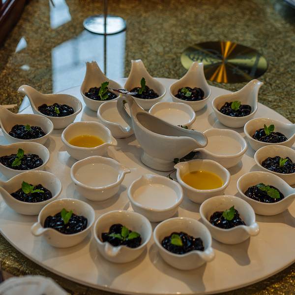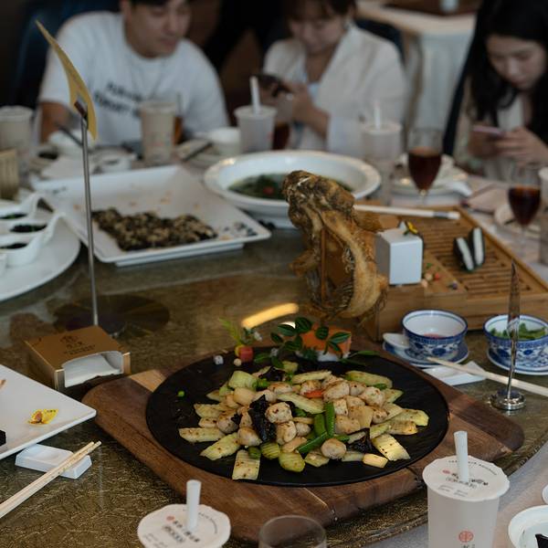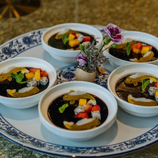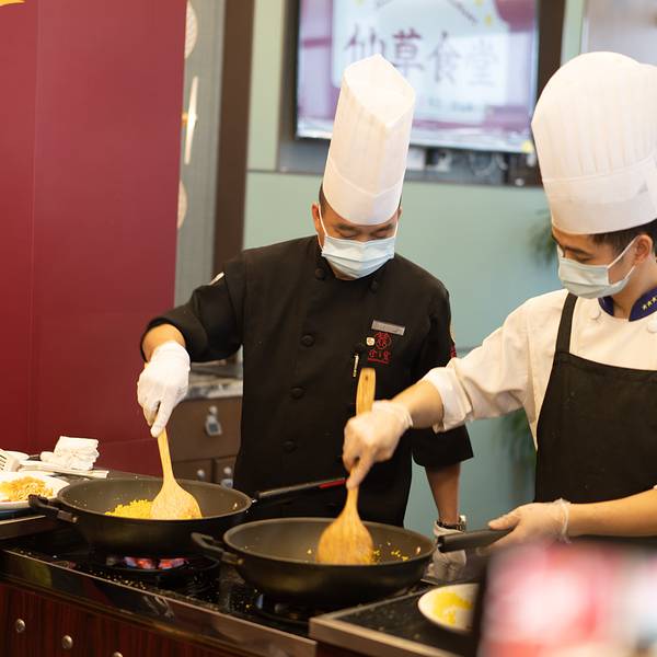 当中国仙草领军者联合世界美食之都·顺德,书亦烧仙草x珍之宝快闪店「仙草食堂」终于来了!传统和创新相交,中方和西方融合,每道点心都是很奇妙的口感体验直击味蕾!仙草忠爱粉必来打Call鱼,好吃又好拍,重点是仙草点心配奶茶真的敲解暑降温!顺德这一站的主题叫亦起寻味-顺德珍之宝,那么下面就跟随着我的脚步 亦起来寻味顺德·珍之宝吧!仙草慕斯卷,传统和创新结合,将仙草融入西式美点中,Q弹有新意仙草戏锦鲤,书亦招牌啦.半杯都是料.冰凉美味仙草冻清,热解暑!锦鲤有点像金桔的口味。蜜意烧仙草肠,烧仙草制成的肠粉,表面铺满了松脆的杏仁片与花生酱,层次分民,回味无穷杨枝甘露仙草挞,入口满满葡萄香杨枝甘露挞酸酸甜甜的,一口爆浆,吃一口就爱上了。霸气仙草面,大口品尝爽滑滋味脆皮仙草糕,为伦教糕注入新灵感,外脆里糯,仙气四溢。小麦仙草糕,仙草清香与花生酱的香浓互相中和,口感爽韧,带有淡淡回甘。仙草水果沙拉卷,香酥可口,营养丰富,小孩子更爱吃脆皮无骨功夫猪,特选6斤以下的原只新鲜奶猪,肉质精瘦,脂肪含量较少,烤制后不会过柴过硬;“功夫”意指大厨精湛的刀功技艺,需要刻苦训练,累积经验,方能使小小奶猪,完美的骨肉分离。均匀涂抹秘制酱盐,自然风干入味,用荔枝木手工烤制,风味中带有丝丝熏香,外皮香脆,入口不易起腻,味形咸香。冲浪鸡油菌沙虫汤珍之宝主厨现场烹饪珍之宝金银炒翅,这么多好吃的美味,真的是停不下来。珍之宝金银炒翅黑松露笋壳骨香炒球,笋壳鱼是顺德人情有独钟的养殖鱼类,其肉质特别鲜嫩爽滑,备受厨师推素, 仿效传统触鱼秋的做法,将笋壳鱼其肉刹碎打球,配以誉为食材“黑钻石”的名贵黑松露,口感层次丰富,味美且营养十足。珍之宝独创的摆盘,有“鱼跃龙门”之意象,造型活灵活现+吉祥喜庆;