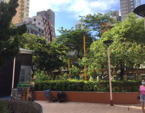 洗衣街花园距离麦花臣球场很近,旁边是小巴站,经过的行人不少