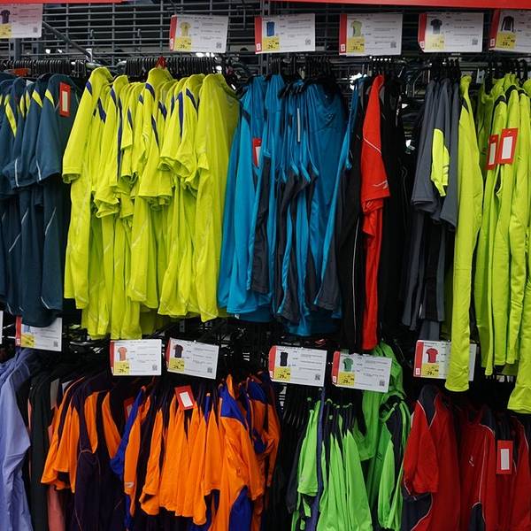 在运动品牌来说却是算很便宜,十几元的背心,二十几元的短袖,四五十元的长袖,五六十元的户外装备等...