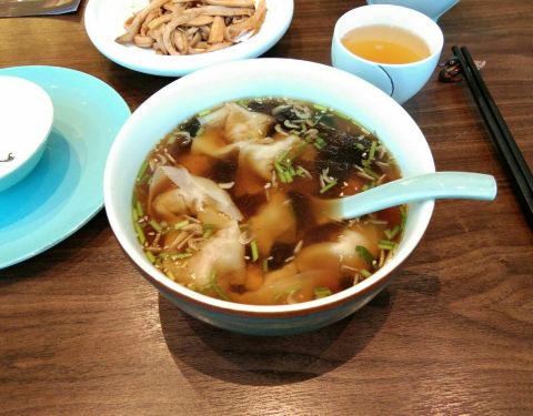 晚餐再来这里的花悦小厨(百信广场西区二楼),9.9元购50元代金券,因为每顿可不超20元,且还有好几个想吃。手撕菇菌(微辣)、北京小馄饨(爽滑)各22元。