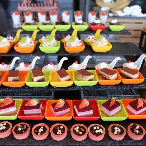 住的酒店 在楼上吃了早餐 旋转餐厅在顶楼 样式很多 排了一大排 口味也不错,什么风味的都有 而且在顶楼的风景真的非常非常好 还可以看到海滩 !!!