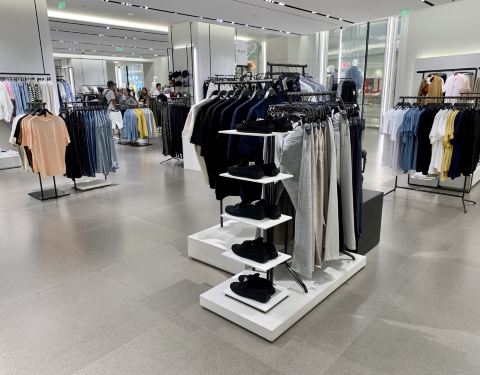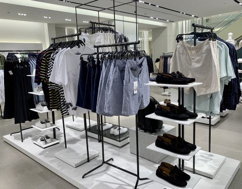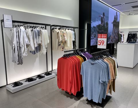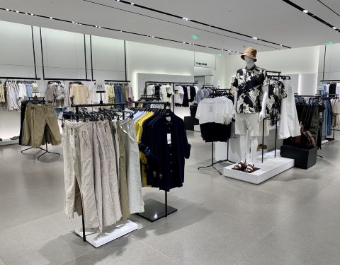 女装的入口在一楼,进去之后发现负一层还有男装。夏季的款式很多。最里侧的一个角落,放着一些打折的款式,很便宜才79块,但是款式都不好看且严重断码。给老公选了一条棉麻质地的夏季七分长裤,新款200多,质地很...
