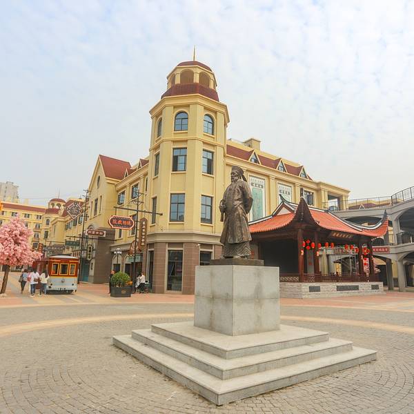 游览过博物馆以后,继续前行,就是民国范十足的“汉口镇戏码头”商业街。正所谓“驾乎津门,直追沪上。”过去汉口的辉煌,真称得上是煊赫一时。步入街道,仿佛穿梭了时空,回到了那个时代,鳞次栉比的老字号、年代感十足的黄包车、老火车,更是让人感慨不已。再加上游人如织的场景,那种热闹与喧嚣,不足为外人道也。继续前行,就是一处宽敞的广场。广场上还有一尊晚清名臣张之洞的雕塑,张之洞的名气应该是很大的,这里就不用雄鹰多做介绍了吧。站在广场上四处眺望,可以想象,晚上的场景又该有多么的热闹。真的期待以后还有机会,看一看这里美丽的夜景。