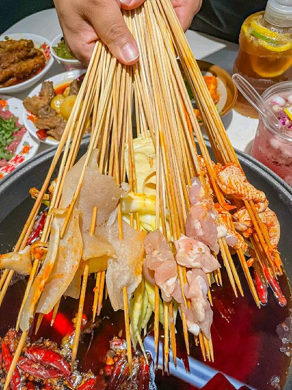 这家店真的治好了我们几个好饭友的选择困难症,不管是想吃火锅的,还是想吃串串的,这里都有,一锅全搞定。 还有油炸串串🍢、小吃冰饮🍧等,种类丰富。店里的环境也很复古,很有老成都的感觉。 —— 🏠海椒市串串香(茶店子店) 📍地址:金牛区茶店子南街2号(🚇地铁七号线茶店子站D2口步行330米) —— 串串推荐: 吃串串肯定少不了牛肉🥩,我最喜欢的香菜牛肉、嫩牛肉、折耳根牛肉、麻辣牛肉等,每次都会拿一大把。牛肉串串都是店里每天现切现穿,肉质新鲜,烫好之后入味又好吃😋。 另外还有各种味道的掌中宝,无骨耙鸡脚系列,口感脆香弹牙,麻辣入味。 ♨️火锅菜推荐: ⭕虎皮糯鸡爪 口感软糯,外皮吃着是酥香入口的感觉,除了烫好直接吃,还可以蘸点干辣椒面,更入味过瘾。 ⭕爆辣坨坨排骨 大块的辣排骨,腌制好就已经入味了,烫好之后直接吃,肉质香辣糯口,口感软滑不柴。 ⭕烧椒皮蛋丸子 口感Q弹又糯香的丸子,吃一次就喜欢这个味道,烧椒不辣口。 冰饮小吃: 吃火锅串串,来一杯冰柠茶真的是解辣解暑又冰爽。还可以加一份菠萝椰子炒冰,🍍菠萝的清甜混合??椰香味,凉fufu又爽口的感觉✌🏻。 个人感觉是好吃不贵,很接地气的老成都味道。店里的酒水也是平价,晚上吃宵夜也可以去,真的方便。