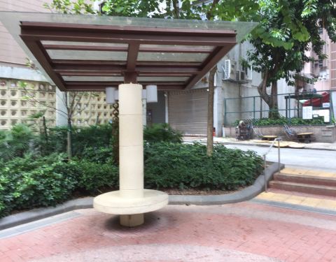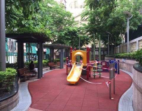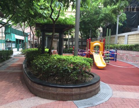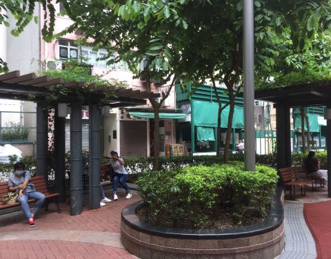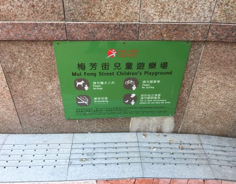一条小街有两个休憩处,梅芳街儿童游乐场位于梅芳街休憩处的对面,两个地方相距不到10来。游乐场明显的环境好很多,设施和绿化都不错,使人的人更多。
