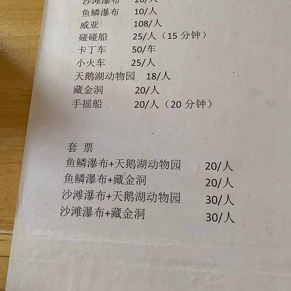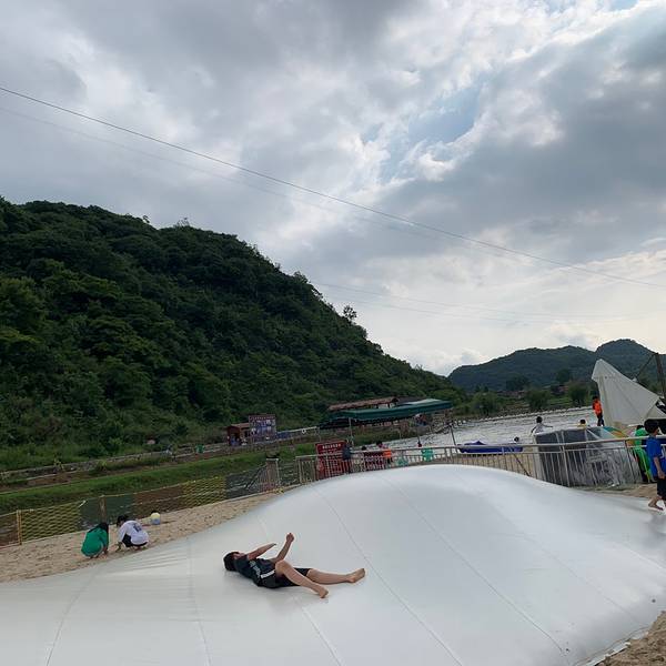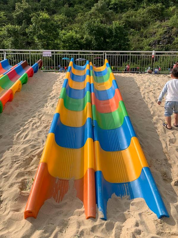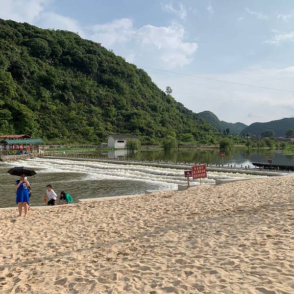 周末周边游再次来到安顺,与近期连日暴雨不同,周日天气晴朗,遂搜索周边景区,来到十里荷廊. 门票:大门票免费,小景点收费(基本上在20元左右,详见图片),个人建议在线上购买,大概8-9折. 关于停车:两旁路边有为数不多的停车位,停车比较困难,收费10元 由于去的前几天暴雨,河水水位较高,当天关闭能玩的项目不多,就选择了一个小孩子喜欢的沙滩项目。沙滩项目需光脚或者自备拖鞋,入口处旁边虽然有6个滑道,但是由于角度不够大,且摩擦系数过大,小孩子很难滑下来,比较失败. 游玩注意事项: 1、沙滩旁有多人荡秋千的项目,但是不建议6岁以下的小朋友玩,身材过小容易发生危险; 2、小景点外有售卖饮料饮食的地方,比平时贵1元,如果没带够的话,此时不要犹豫,果断购买。因为小景点内售卖的更贵,虽然二者仅一墙之隔; 3、个人觉得河边防护措施不足,小孩子容易失足掉落入河水中,家长一定要留意保护; 4、鱼鳞瀑布是网红景点,拍照和录短视频的人很多,但是受到河水水位的影响,水位高时出于安全考虑将关闭此景点,如果是特意去鱼鳞瀑布的话,一定要注意头一天有无大量降水.