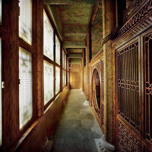 乐寿堂左面一侧是乾隆花园,有玉粹轩,符望阁、倦勤斋、竹香馆等未开放区域,我用手机伸进栏杆勉强拍下了这几个馆的外观。《上新了故宫》第一季第一期就是拍的这些馆阁的内部,第二季还有她们的内容,所有的一切无不让人惊叹。玉粹轩的《岁朝婴戏图》,运用了线法通景画手法,描绘了过年时宫中的生活景象。景物与室内环境呼应的关系,室内景与画中景视觉上的贯通,有着极强的透视感和逼真的视觉效果。倦勤斋奢华而神秘,用了2600多块和田玉、竹丝镶嵌、竹簧雕刻、汇聚了当时江南最高超的各种工艺,还有大面积线法通景画来还原乾隆对江南的思念。网络上下载几幅内部照片竹香馆里面小楼梯和通道都是只能通过一个人的窄小空间,不知这个皇帝为什么要设计这样一个建筑来局促住自已?是孩童好玩儿的心里吗?符望阁的名字是乾隆取的,意思是花园的建成,符合他的愿望。又叫“迷楼”,室内用了多种不同类型的装修,巧妙地分隔了空间。装饰采用了当时江南风格,工艺和用料都是最顶级的。掐丝珐琅、百宝镶嵌、沉香嵌玉花窗、螺钿镶嵌、还有双面钟、繁复的藻井,无一处不精雕细琢,又无一处不彰显皇帝的尊贵,把他所能想象到的最好的东西全部放进了这座楼中。阁内部照片网络下载原计划内部修复完成,2020年开放的,可今年也未见开放。不知何时才能亲眼欣赏到内部精美的装饰哟!