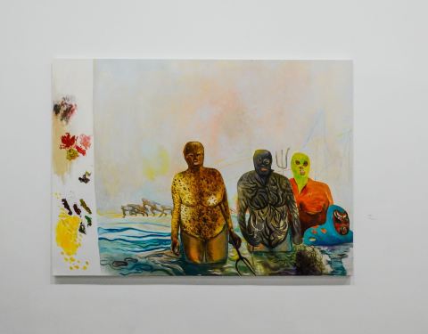总共不到十幅的作品,粗看有点不明觉厉,赶紧去看介绍,官网介绍说策展人从欧洲学者的角度,敏锐地捕捉到段建宇的绘画和德语诗人保罗·策兰的诗歌之间的相通之处,即由个体的处境引申出语言和现实之间如何发生诗意的转换,为我们理解艺术家的创作打开了新的通道。 看完之后,我没觉得打开了通道反而更糊涂了😳,也没悟出主题的含义……看来对于艺术的培养真的要从小抓起啊。有一组作品的名称很有趣,叫“米其林七星**”,仔细观察,画上的人一层层的,果然是米其林七星呢😂。