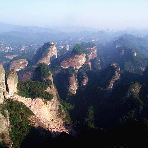 八角寨是崀山景区最高峰,山势不高,有湖南新宁和广西新宁两个上山通道,一路向上,到云台寺就是头了。这几日新宁阴雨,视野极差,到观景台也没机会俯瞰山势,这是此次最大的遗憾。山上遇到一个上海过来的老哥,聊了些出行上的事,下山时乘坐观光车两次转换时都见到他,穿着凉鞋徒步,是个厉害角色。八角寨登八角寨八角寨八角寨八角寨山顶这里过去就是云台寺和观景台,以往从这里可以俯瞰到下图这样的美景这是网上找的生图。八角寨