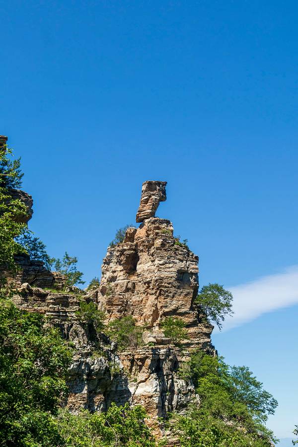我们是自1600米海拔的环线进入,从1900米半环线返程,全程走一个大环线,虽然这样路程较长,时间也较长。但能欣赏到的风景绝对是最全最多最美的。其中现人晒靴就是大环线中,第1个给我留下印象最深的白石山奇石。一块怪石屹立在,重岩石之巅,从侧面看去,神似一个靴子的形状,真的就犹如是仙人在此晾晒靴子一样。