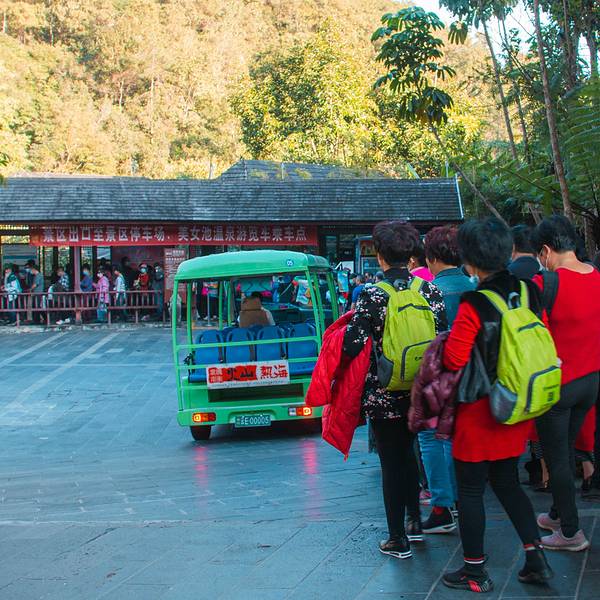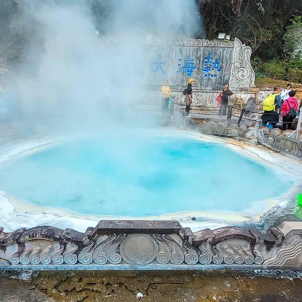 听着民宿老板推荐,来了热海景区 从古镇自驾过来30分钟左右 腾冲 这里火山地热资源丰富, 门票25元一个人, 景区电瓶车15元往返 电瓶车TOP: 进去的电瓶车是拉到入口,真心没多远,想省钱可以走到入口,再一路爬山爬到大滚锅,沿途看各种温泉泉眼 回程的电瓶车是直接从山顶大滚锅,一路下山拉回出口,这段路蛮长的。 前面爬山累死了,所以坐车很舒服。 但是,等车处人山人海转了N个弯,我们排队起码半小时。 走路的话,一路下山路,又宽又平,走20分钟也能到,2公里不到。 建议:节假日选走路,平时可以选电瓶车水池子烟雾缭绕,一股子硫磺味好不容易爬到大滚锅,这里到处都是人人人, 我手机咔嚓一张,停留了30秒,走了因为已经付了往返车费,就老老实实的排队等车了。。。 这景点对于我来说吧: 来都来了,不来可惜了,来了真后悔。。。。