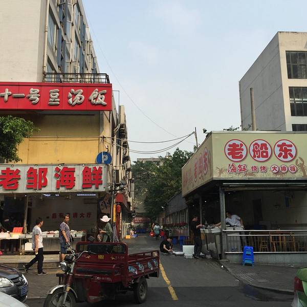 一说吃海鲜,成都本地人一定会想起青石桥海鲜市场,这里主要经营海鲜批发和加工,是成都最大的海产品批发市场了。青石桥海鲜市场位置相当市中心,挨着盐市口,离成都最热闹的商圈只有几百米,距离天府广场也很近,所以交通也是非常便利的。这个市场成立时间很早,个人和小型餐饮想买海鲜也可以在这里选购,海鲜确实很全很丰富,除了海鲜还有各种调料添加剂之类的。不过环境真的比较差,有次走那路过,看见一只耗子从铺子里窜出来,而且那个鱼腥海水味相当大啊,每次来我都想快点离开。其实蛮影响市容市貌的,毕竟还是在这么中心的区域。青石桥周边有相当多的加工店和海鲜烧烤大排档,你可以自己在市场买好海鲜拿去店里加工,也可以直接在店里点菜,店铺里也是有自己的海鲜的。一到晚上,生意还是相当好的,海鲜店老板在门口拉生意很费力。夏季傍晚,海鲜烧烤配啤酒,再点些凉拌菜,人均几十到一百元,一般一份基围虾的价格就是70元左右。不过据说青石桥有些商家会做手脚坑人,买东西的时候稍微注意下,尽量货比三家。另外,青石桥那儿其他吃的也很多,有几家老字号餐饮店很有名,张烤鸭、王婆荞面……市场往前面走两百米左右就是个大型商场——财富中心,那里有个家乐福,可以去逛逛