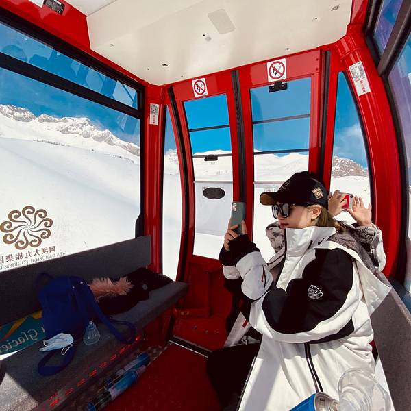 适合在缆车中拍照,切记不要乱动,很多人在缆车里就高反了,同行的白衣小姐姐,不幸高反,一个劲儿的吸氧气